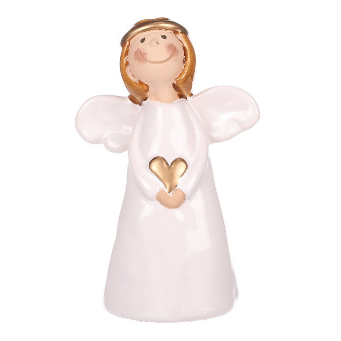 Anjel – keramická figúrka, biela so zlatým srdcom