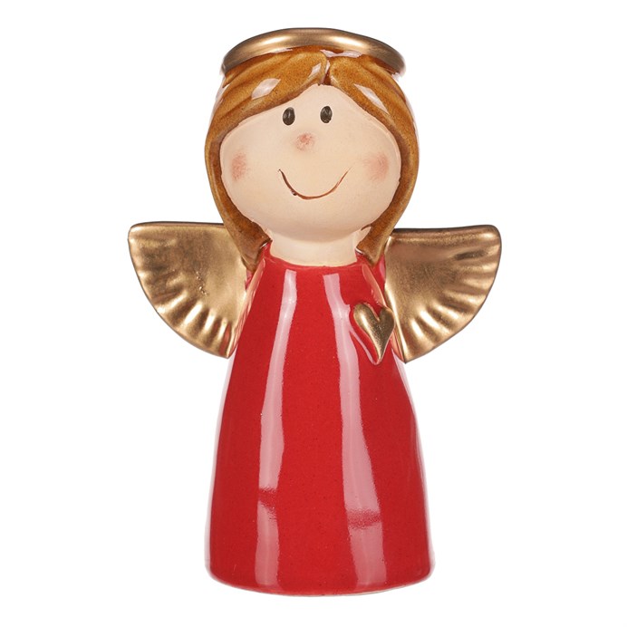 Anjel – keramická figúrka, červená so zlatými krídlami