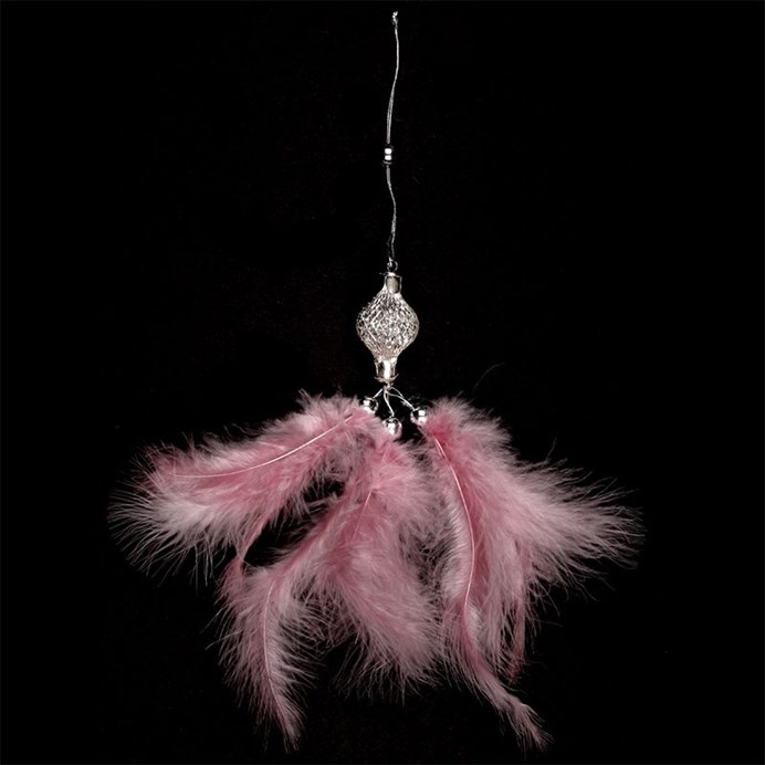 Dekorácia z peria závesná – farba ružová, balené 6 ks, cena za 1 ks