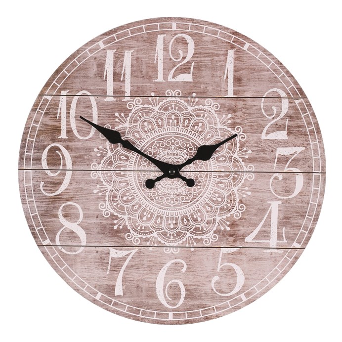 Hodiny nástenné – pr. 34 cm, MDF, jemný kvetinový motív