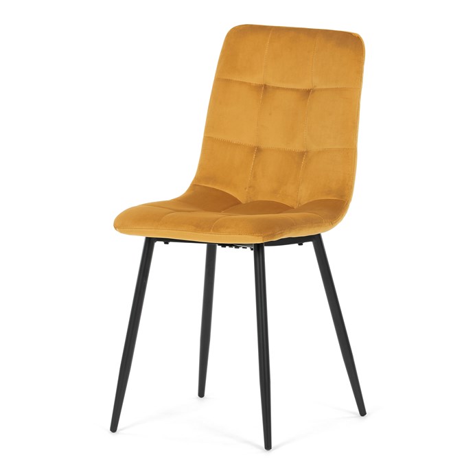 Jedálenská stolička značky Autronic v elegantnej žltej farbe je ideálnou voľbou pre štýlové interiéry. Čalúnenie z jemného zamatového materiálu pôsobí luxusne a zabezpečuje pohodlie pri sedení. Decentné prešívanie zdôrazňuje precízne spracovanie, zatiaľ čo stabilné čierne kovové nohy podčiarkujú minimalistický vzhľad s industriálnym nádychom. Vďaka kvalitnému polstrovaniu z PU peny je vhodná na každodenné stolovanie aj dlhšie posedenia. Táto stolička prináša harmóniu medzi funkčnosťou a moderným dizajnom, ktorý oživí každú jedáleň.