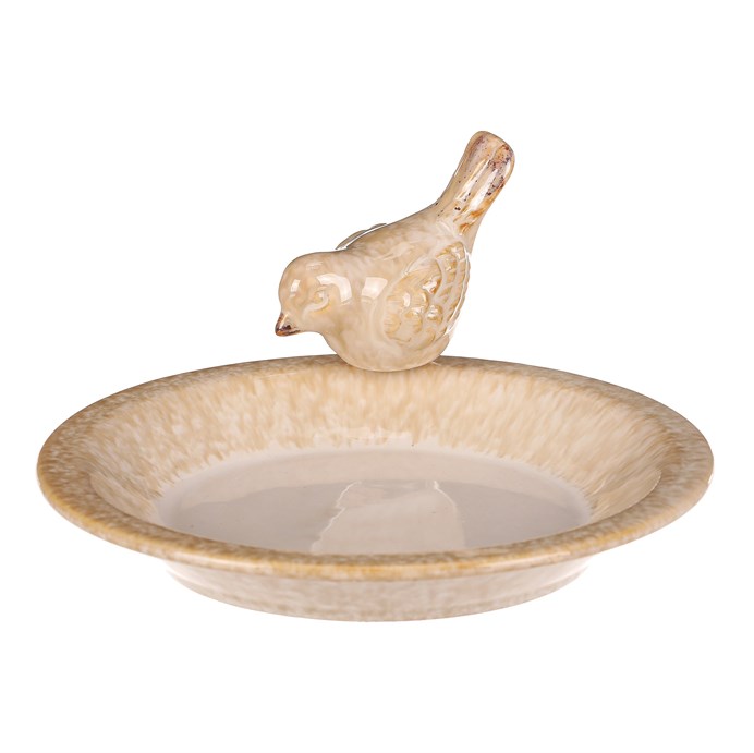 Kŕmidlo/napájadlo – keramické, s vtáčikom, béžovo-šedé