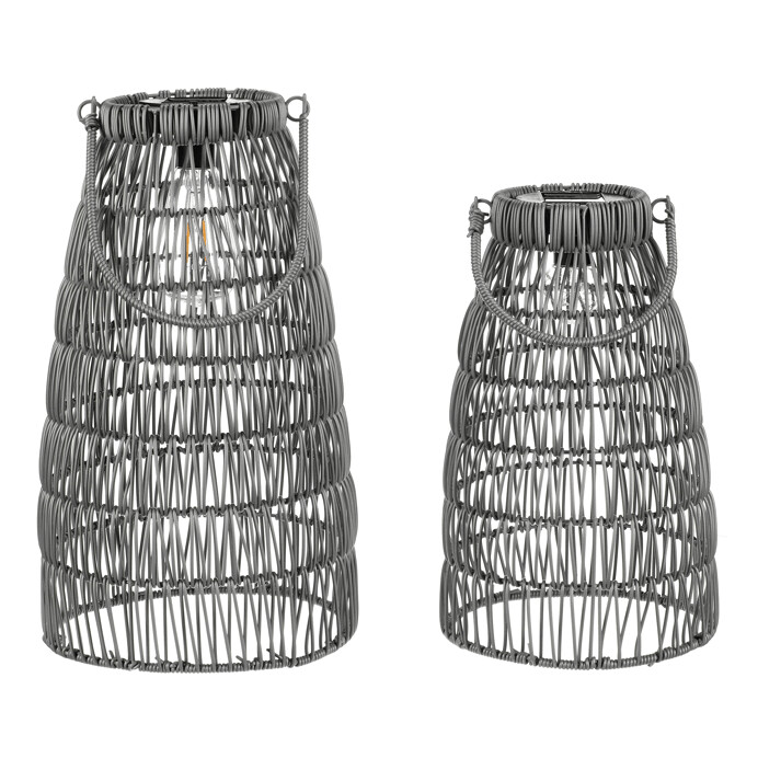Lampáš – umelý ratan, kónický, LED osvetl., sivá, cena za sadu 2 ks