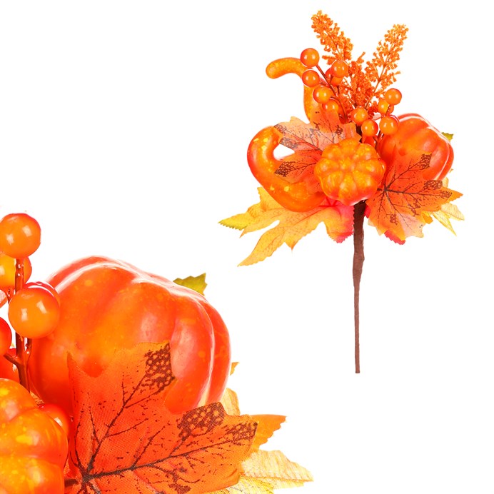 Lístie, tekvica a bobule – umelá vetva, farba oranžová