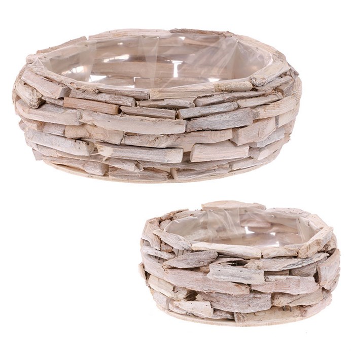 Obal aranžérsky – okrúhly, z kúskov dreva, cena za sadu 2 ks