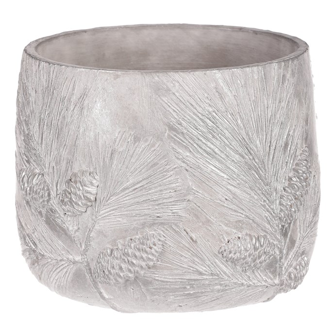 Tento ozdobný betónový obal na kvety je súčasne aj nádhernou vianočnou dekoráciou pre váš domov. Jeho jednofarebný šedý povrch v kombinácii s motívom borovicovej vetvičky so šiškami vytvára atmosféru sviatkov, ktorá vás okamžite pohltí. Betónový povrch je síce pomerne ťažký, ale na druhej strane tým pridáva na stabilite. Tento obal tiež perfektne zadržiava vlhkosť a chráni interiér pred presakovaním vody, čím sa stará o ochranu vašich rastlín aj podkladu samotného. Pokiaľ chcete vytvoriť úžasnú vianočnú atmosféru a chrániť svoje kvety, tento obal bude skvelou voľbou.