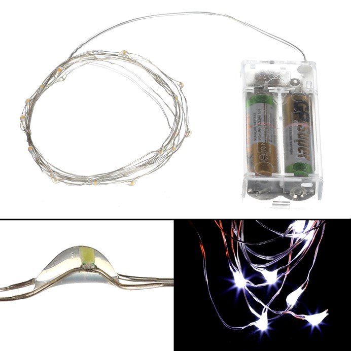 Reťaz s LED svetielkami – časovač, studená biela farba, 2 m/20 LED