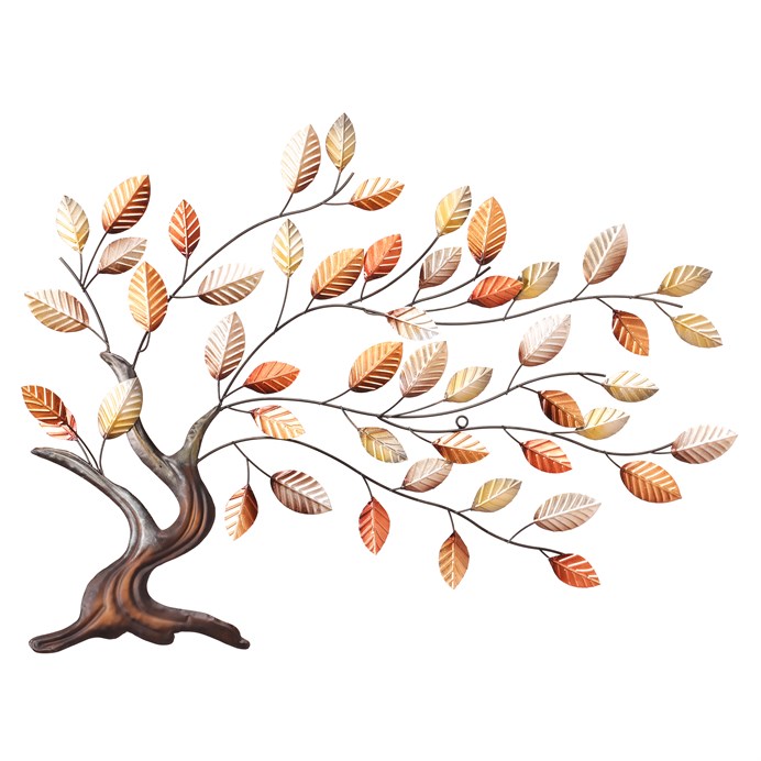Táto veľká kovová závesná ozdoba na stenu, predstavujúca strom s rôznofarebnými lístkami, bude ústredným prvkom vášho interiéru. S jej rozmermi (100 x 80 cm) a jedinečným dizajnom predstavuje dokonalý spôsob, ako pridať do vášho priestoru nádych elegancie a originality. Striedanie zelených, strieborných a medených odtieňov lístkov vytvára výrazný pôsobivý kontrast, ktorý priťahuje pozornosť. Tento kovový strom sa stane na stene výrazným prvkom. Vyžaruje kreativitu a nápaditosť a dodá vášmu interiéru osobitý charakter. Buďte pripravení na obdiv vašich návštevníkov, ktorí budú fascinovaní touto jedinečnou závesnou ozdobou vo forme kovového stromu.