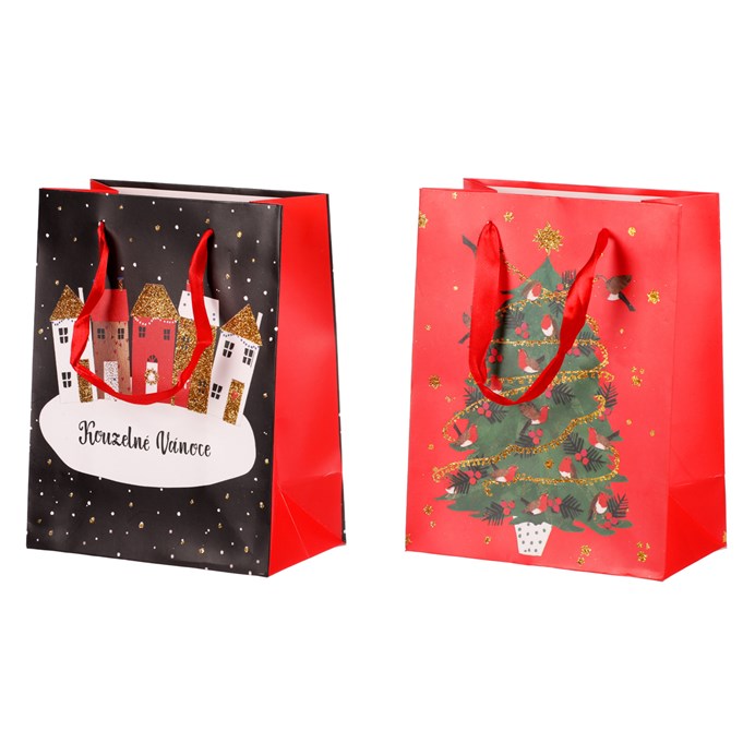 Taška papierová – vianočný motív, mix 2 druhov, cena za 1 ks