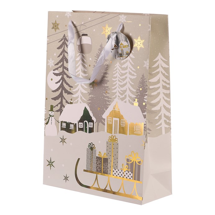 Taška papierová – zimná krajina so sánkami, veľ. S