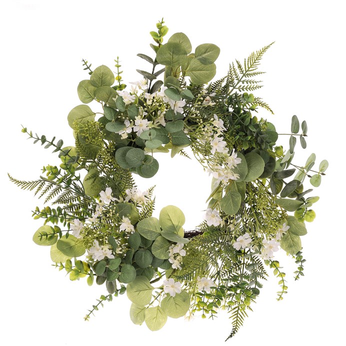 Veniec umelý – pr. 50 cm, zeleň a biele kvety